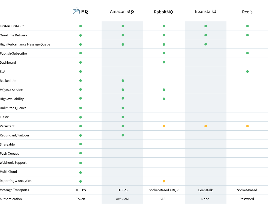 Supports a rich set of features including push and pull queues, long polling, error queues, alerts and triggers, and more.